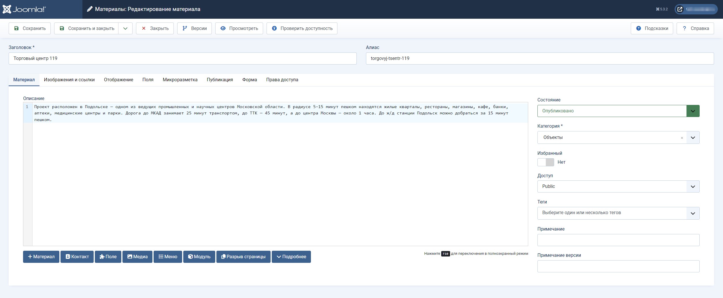 - Срок публикации: через сколько дней материал будет снят с публикации.