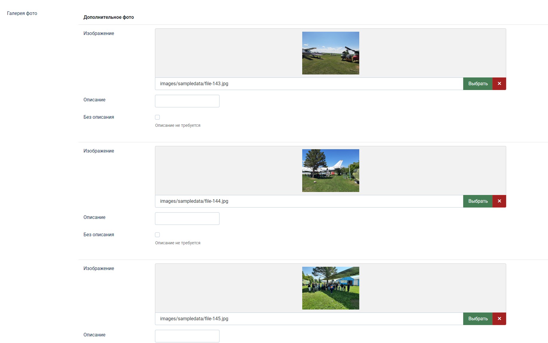 - Папки для изображений и видео: директории внутри